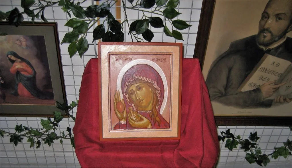 I am very pleased to report here that late last year we had a very attractive addition to the Brentford Heritage Room: a beautiful icon of St Mary Magdalen very kindly donated by Sr Mary Kenefick SMG, which is depicted here.