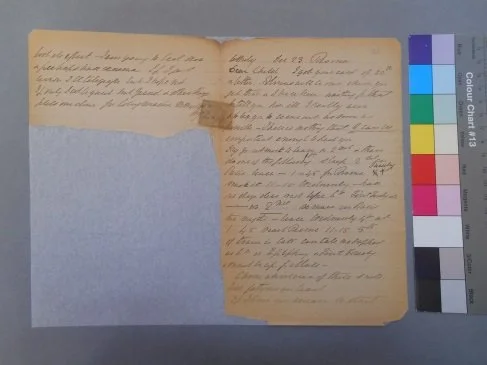 A necessary prelude to the completion of this task has been the painstaking conservation and re-packaging of many of the letters, from May to July 2015, by a team led by Ruth Stevens ACR of the Sussex Conservation Consortium, who have kindly allowed us to reproduce here photographs of their work.