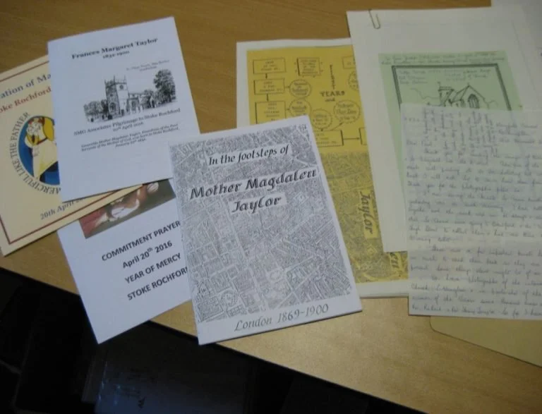 It may thus be said that the tradition of pilgrimage in the congregation which she founded is very closely associated with her own charism or spiritual identity. Fortunately, there are very important collections in the archives which bear witness to the congregational tradition of pilgrimage ‘in the Footsteps of Mother Magdalen’, particularly amongst the papers of the late Sr Rose Joseph Kennedy SMG, who for a period was vice-postulator of the Cause for Mother Magdalen’s Beatification, and whose archive, still only very partially catalogued, covers virtually every aspect of Mother Magdalen’s work and journeying. The origins of the tradition are, however, not easy to locate, and the evidence is fragmentary. Amongst Sr Rose’s papers are a fascinating little group of photographs of Stoke Rochford in Lincolnshire, (dating perhaps from the 1950s) where Mother Magdalen spent her early childhood (one of them is shown right). There are just a few tantalising annotations on the reverse of the photos, indicating that they are a record of a visit from St Helens in Lancashire, where the SMG congregation administered a hospital from 1882. If you look very closely at the photograph you may see that there are four figures at the centre right, one of whom appears to be a clergyman. Alas, unless we find another source of information, the details of this early ‘pilgrimage’ are likely to remain mysterious. It is certainly known that many SMG Sisters in the past went on their own unofficial ‘pilgrimages’ to Stoke Rochford, and in 1984 Sr Rose recorded that Mass was offered in this beautiful, ancient church for the delegates to the SMG General Chapter who had just elected a new superior-general. The tradition of pilgrimage to Stoke Rochford is now well established, and the publication once edited by Sr Rose ‘Pray and Promote’ (now edited by Sr Mary Kenefick SMG) is a marvellous source of information on SMG pilgrimages old and new.